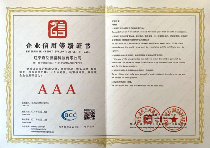企业信用等级证书AAA